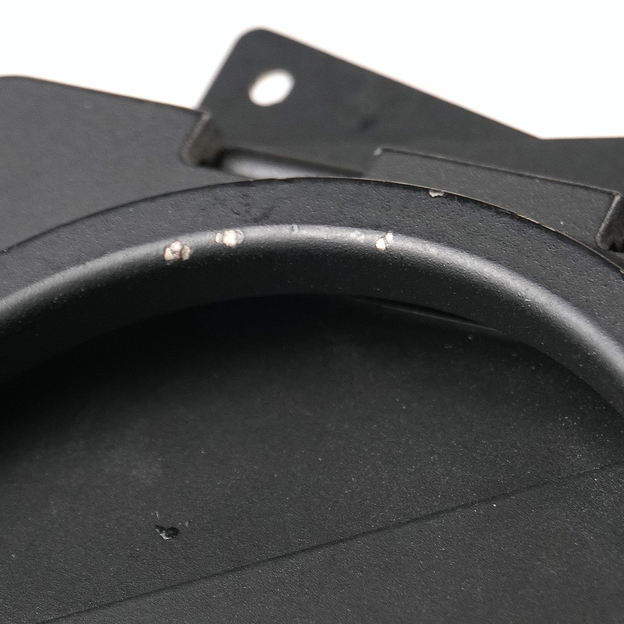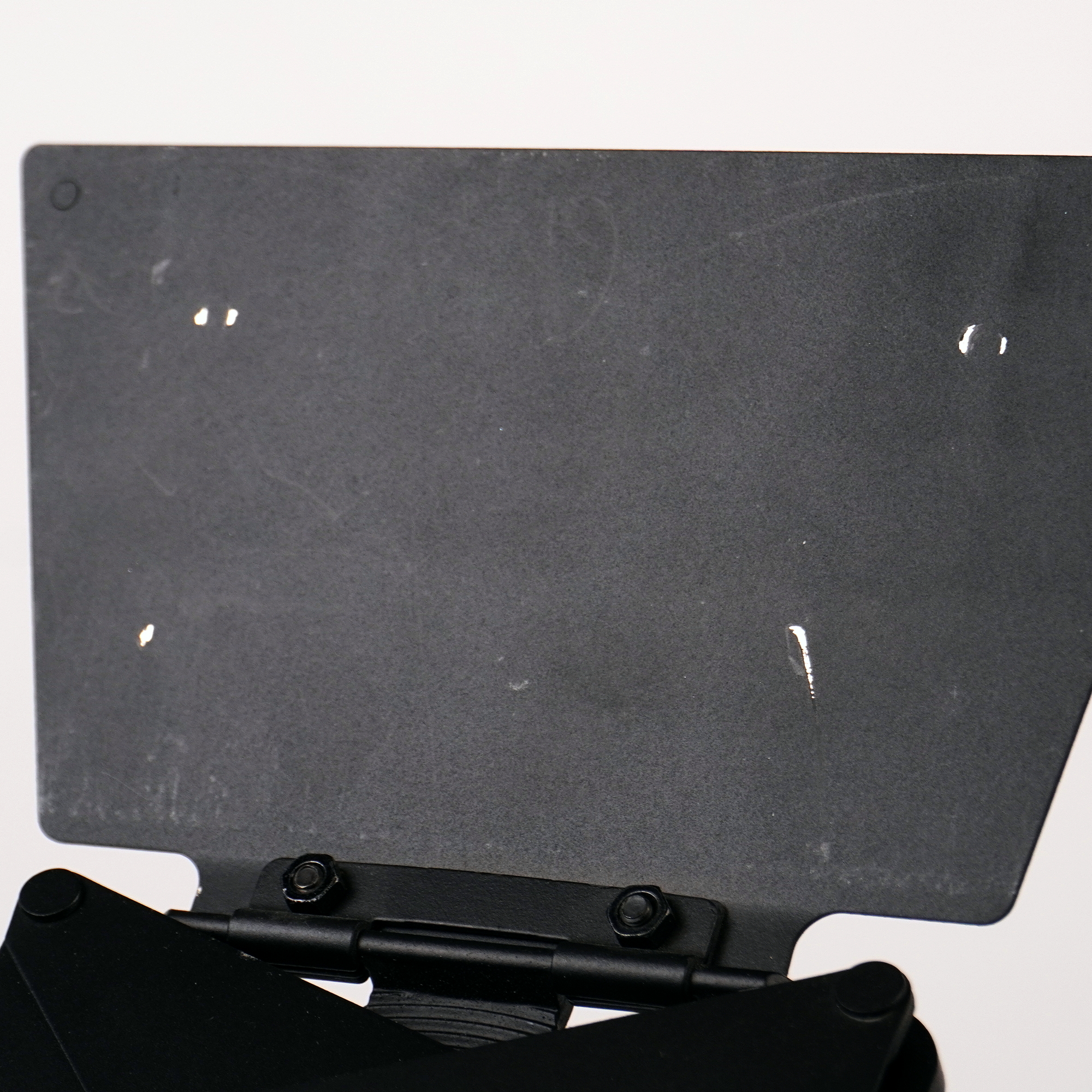 Повреждена упаковка. Потёртости на корпусе осветителя, БП, шторках. Нет зажима на одной из шторок. Отсутствует аккумуляторная площадка и чехол для неё.