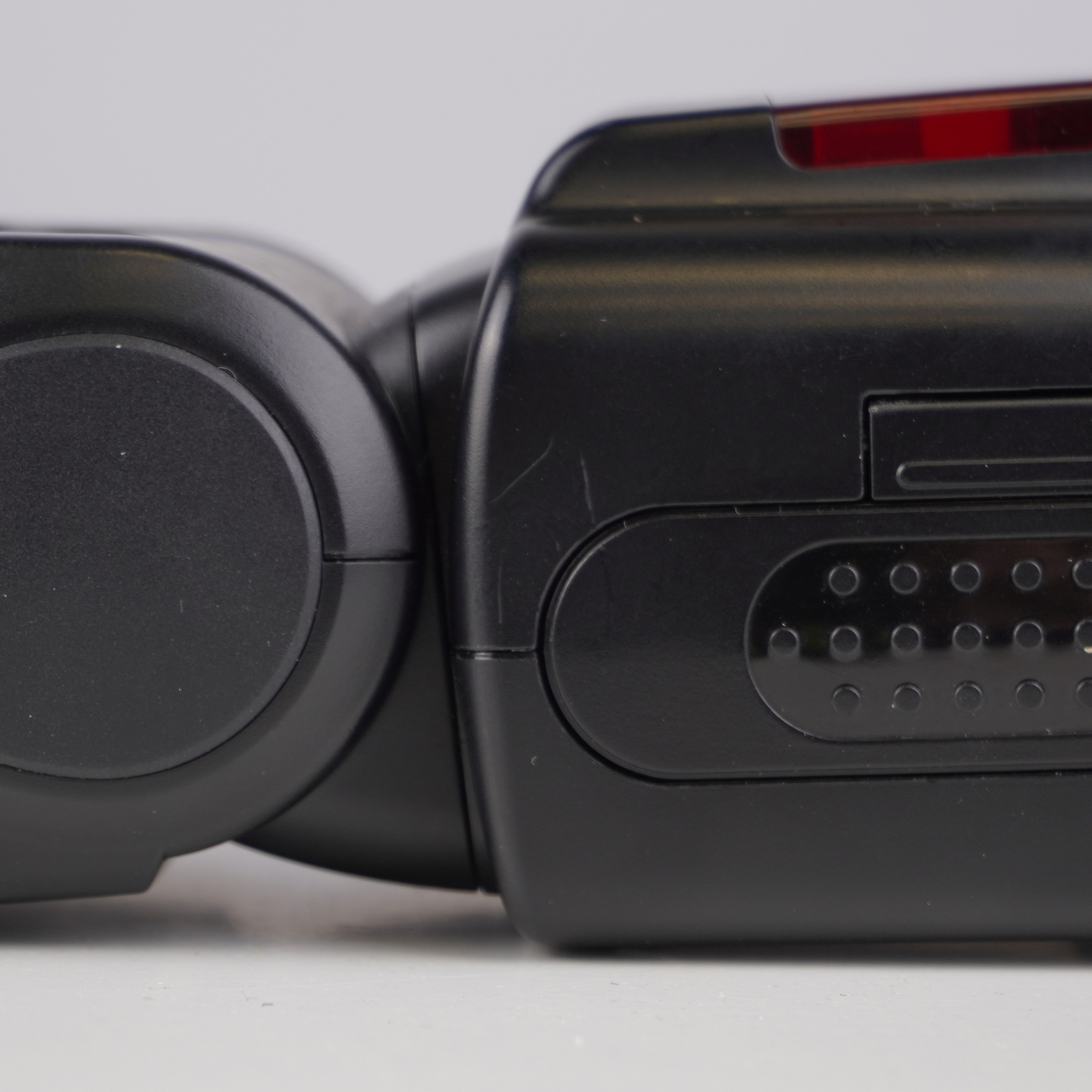 Вспышка изготовлена из прочных материалов, головка поворачивается и наклоняется без люфтов от небольшого усилия с фиксацией в определенных положениях. Металлическая ножка с зажимной гайкой надежно удерживает вспышку в горячем башмаке камеры.