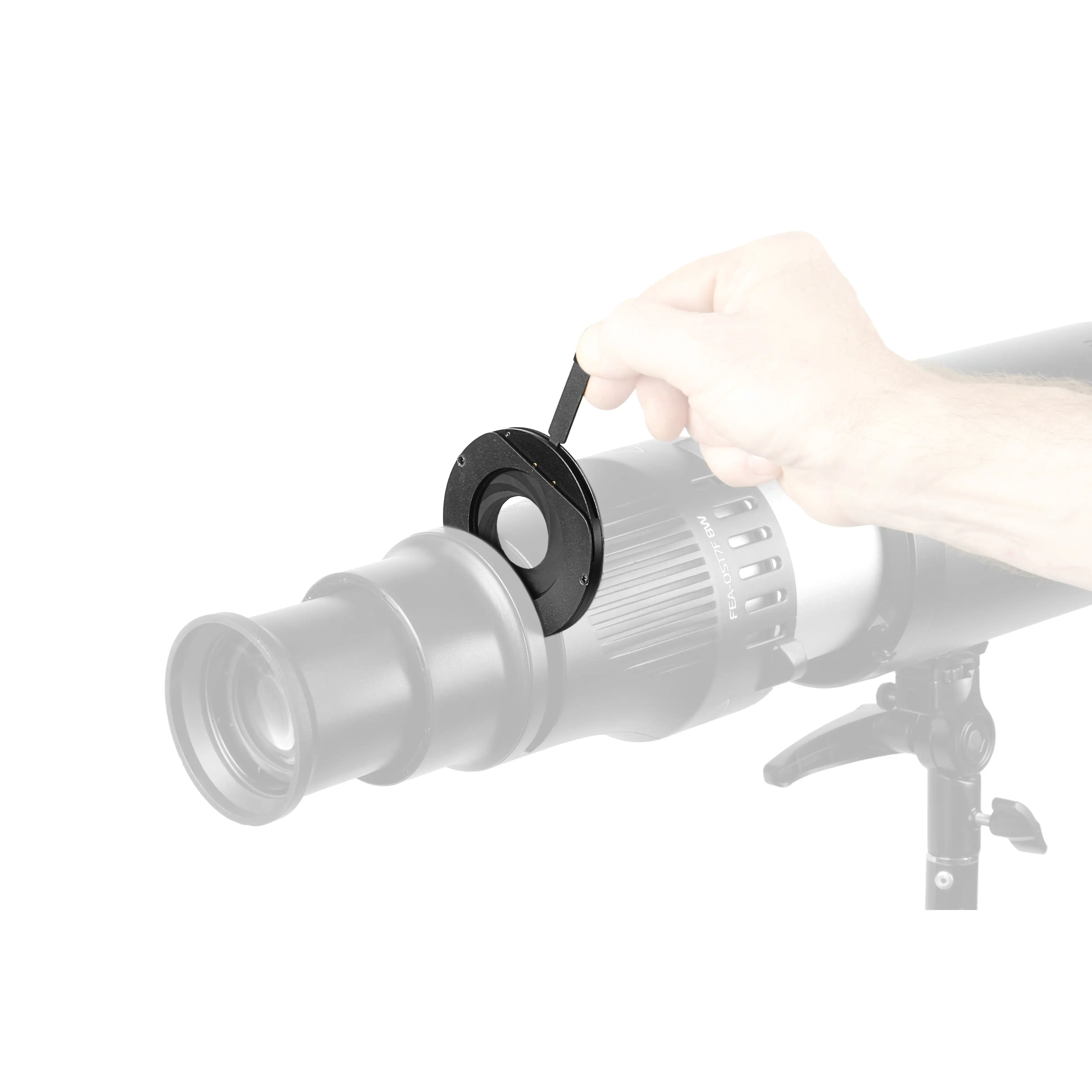 Монтаж осуществляется в универсальный слот насадки, где диафрагма надежно фиксируется с помощью магнитной системы крепления.