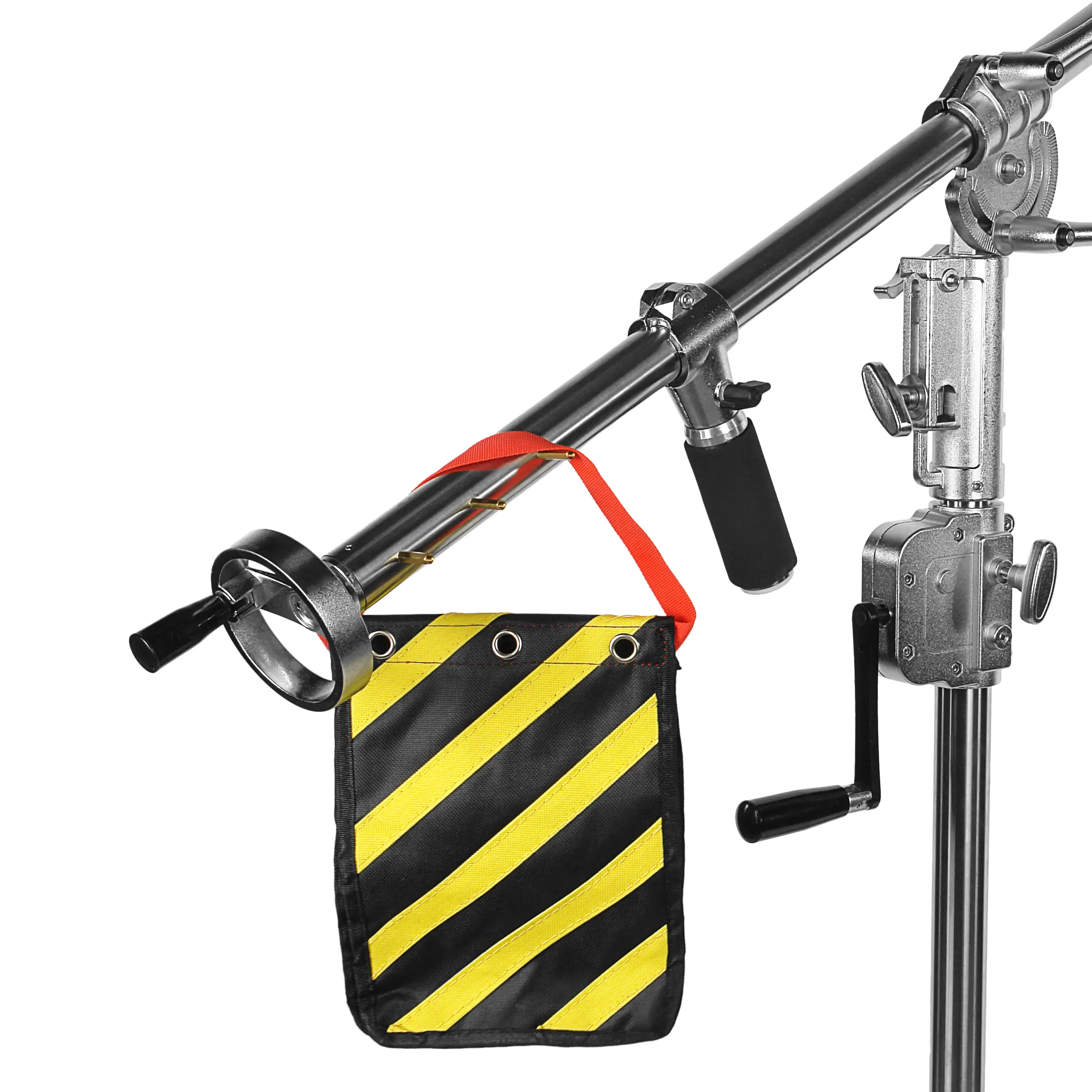 В комплект входит мешок для песка с кольцами для фиксации на специальных штырях перекладины, что увеличивает устойчивость системы при полном выносе стрелы.
