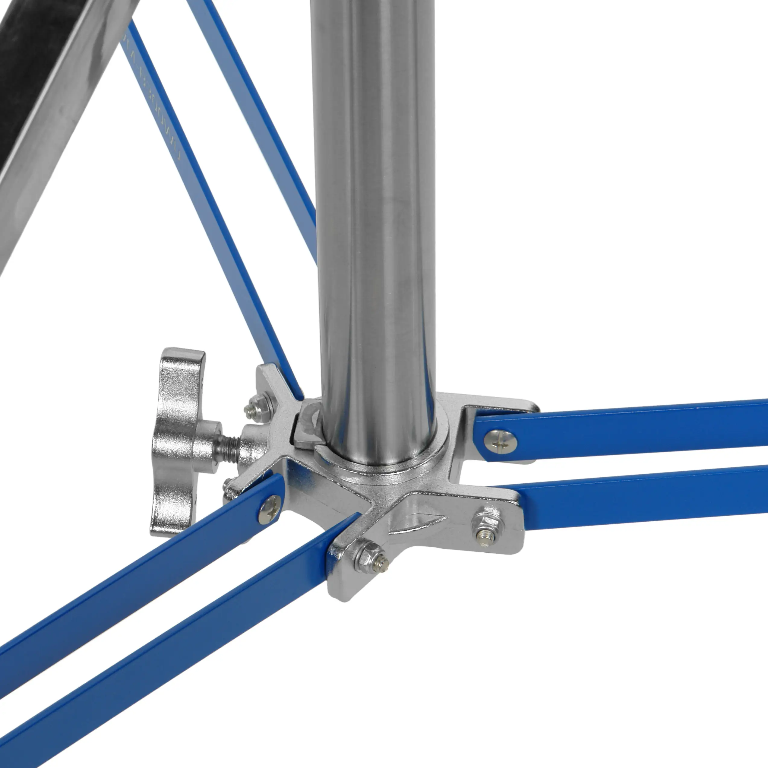 Все основные узлы конструкции, включая зажимы и соединительную муфту, выполнены из металла. Центральная колонна и перекладина изготовлены из нержавеющей стали — это обеспечивает высокую коррозионную стойкость, долговечность и прочность. Такая конструкция гарантирует безопасную работу с максимальной полезной нагрузкой на перекладину до 10 кг.