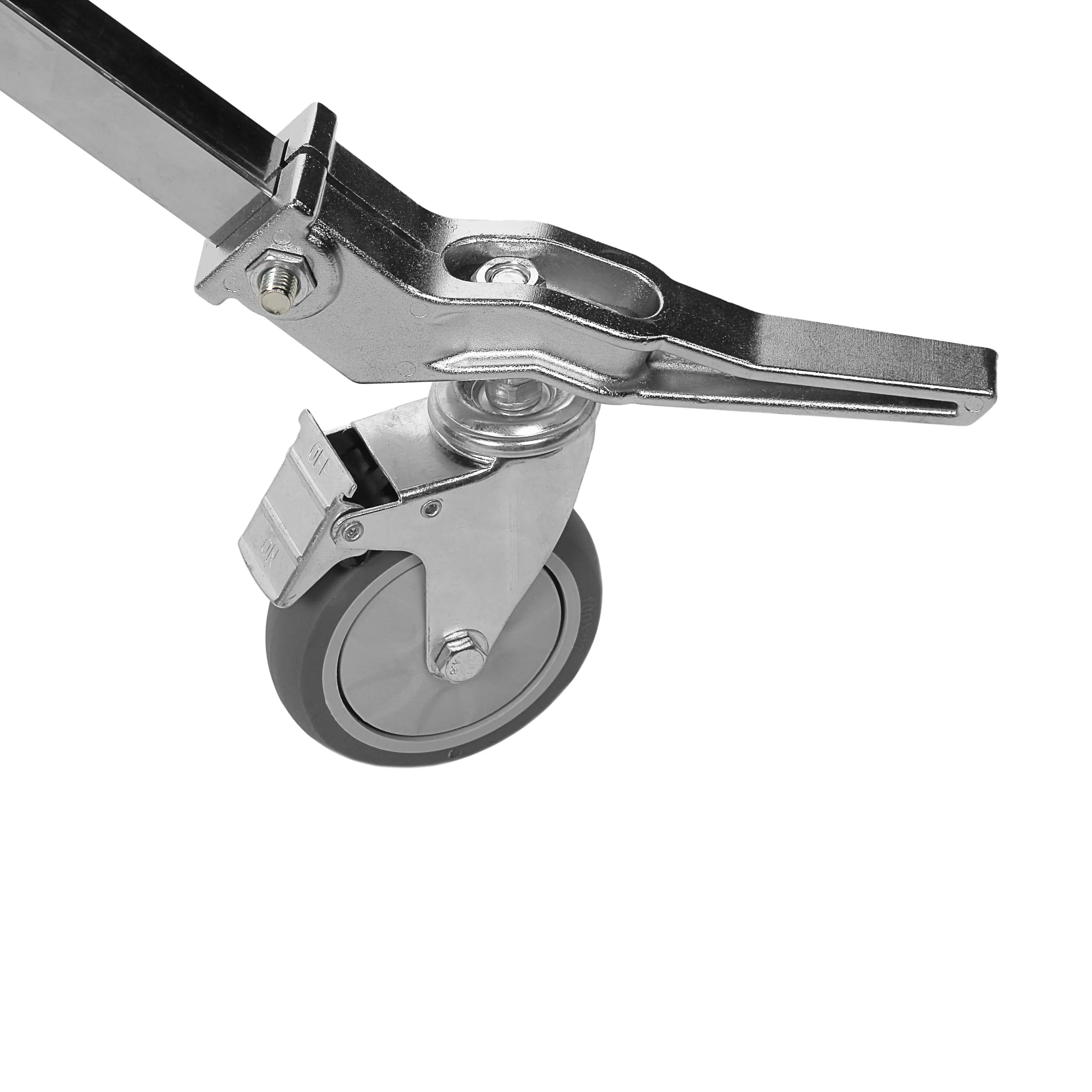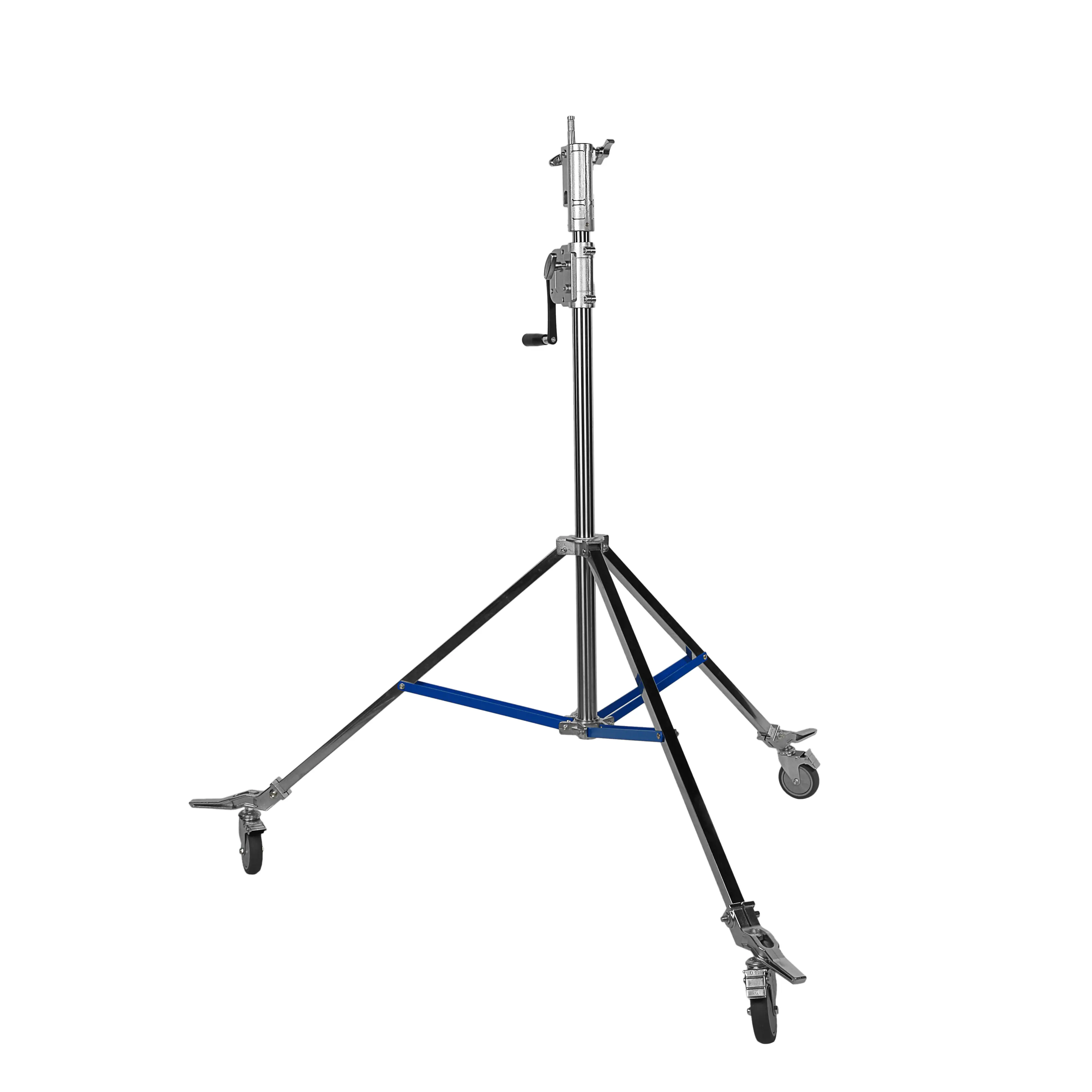 Стойка-журавль оснащена тремя съемными колесами, каждое из которых оборудовано индивидуальным тормозом для моментальной фиксации стойки в рабочем положении.