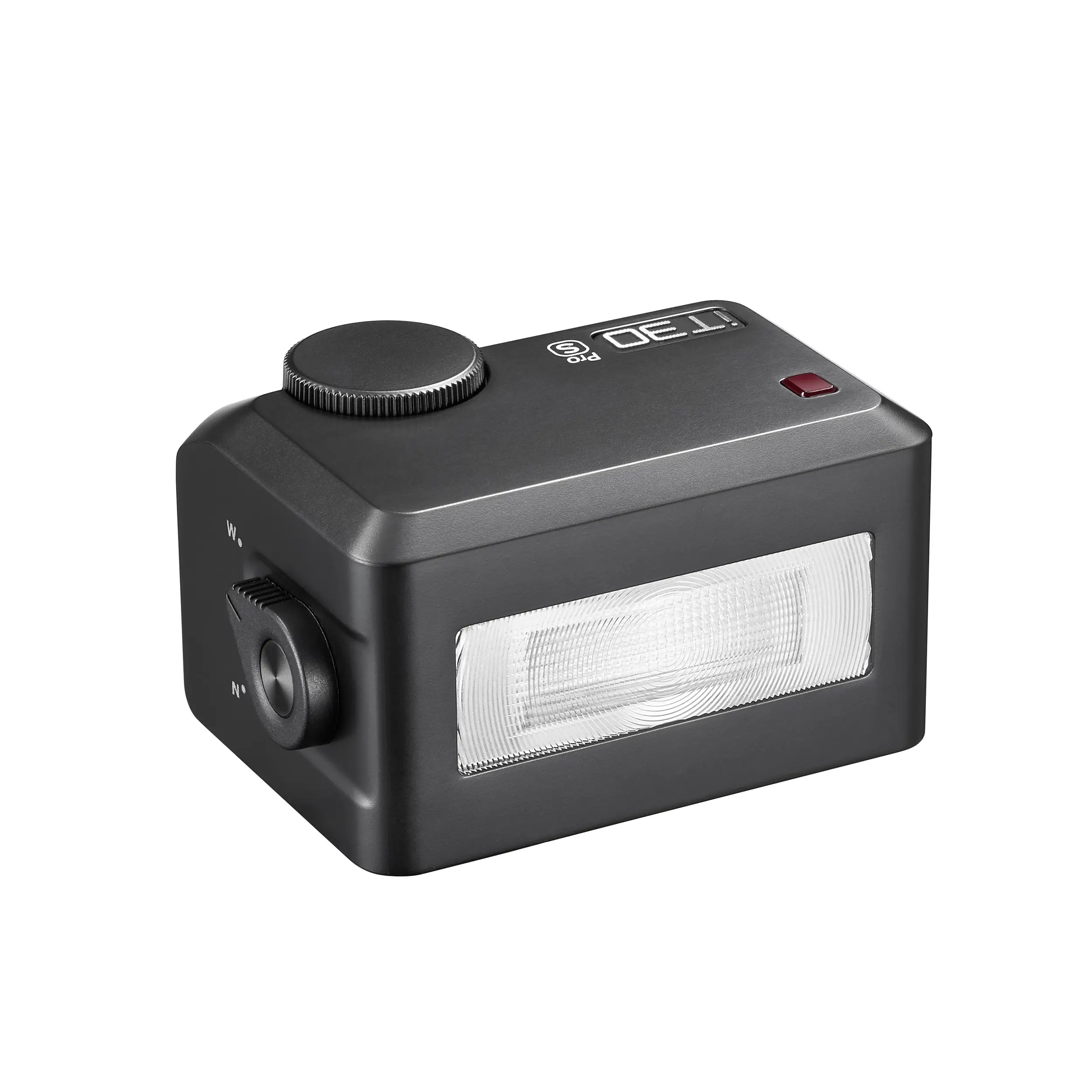 Ультракомпактные накамерные вспышки Godox iFlash iT30 Pro используются с популярными моделями фотокамер (Canon, Sony, Nikon, Fujifilm, Olympus) и поддерживают соответствующие протоколы TTL, идеально подходят для фотографов, в том числе для создания ключевого, заполняющего, яркого бокового или мягкого освещения (с рассеивателем). Оснащены полноцветным сенсорным экраном, пилотной LED-лампой, предоставляют функции коррекции экспозиции (FEC), стробоскопа, высокоскоростной синхронизации для короткой выдержки (HSS), синхронизации по первой и второй шторке, беспроводного управления (2.4G X), в т.ч. группового. Встроенный литиевый аккумулятор обеспечивает короткое время перезарядки перед вспышкой в 1,5с и 560 вспышек за один заряд. Имеют встроенный широкоугольный рассеиватель.