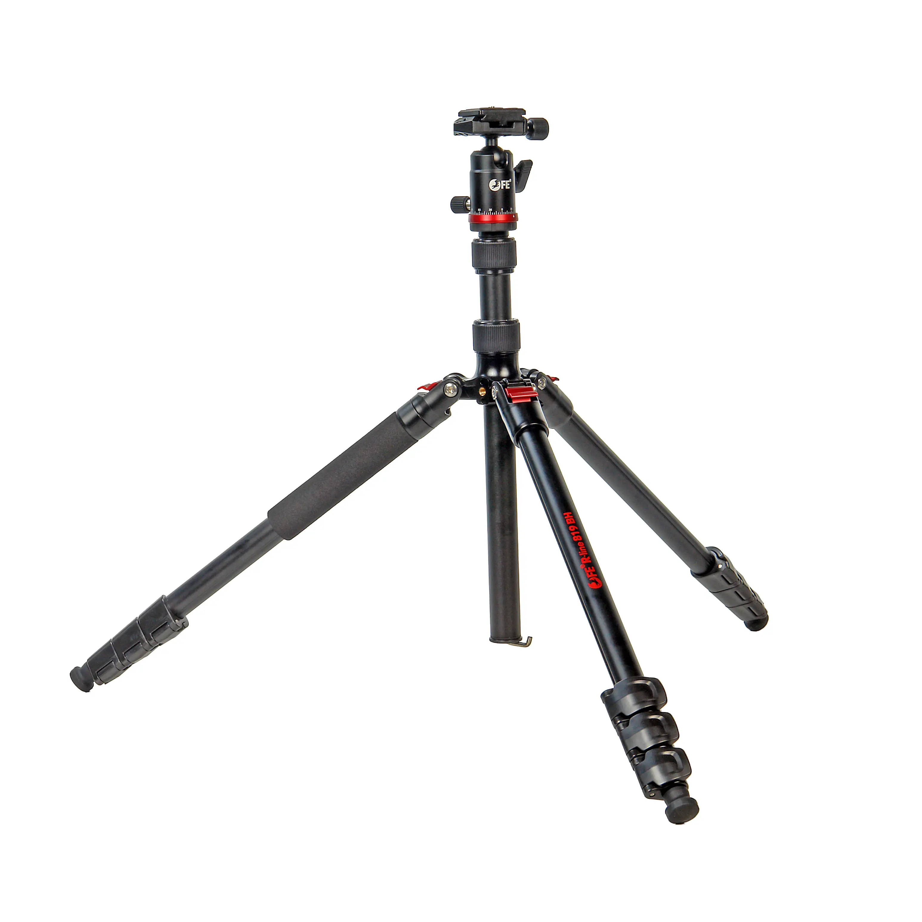 Штатив можно легко подготовить к работе, выбрав высоту установки камеры от 43,5 до 186 см, разложив секции треноги и выдвинув или задвинув центральную колонну. Ноги штатива имеют три фиксированных положения угла наклона. Фиксация ног штатива под разным углом дает возможность использовать в качестве опоры ступени, камни и другие сложные поверхности, а также проводить съемку с более низкой точки. Реверсивно складывающиеся ноги уменьшают габариты конструкции в сложенном виде. Клипсовые зажимы надежно соединяют между собой 4 секции ног, резиновые наконечники на ногах придают штативу дополнительную устойчивость и противодействуют появлению царапин на поверхности пола.