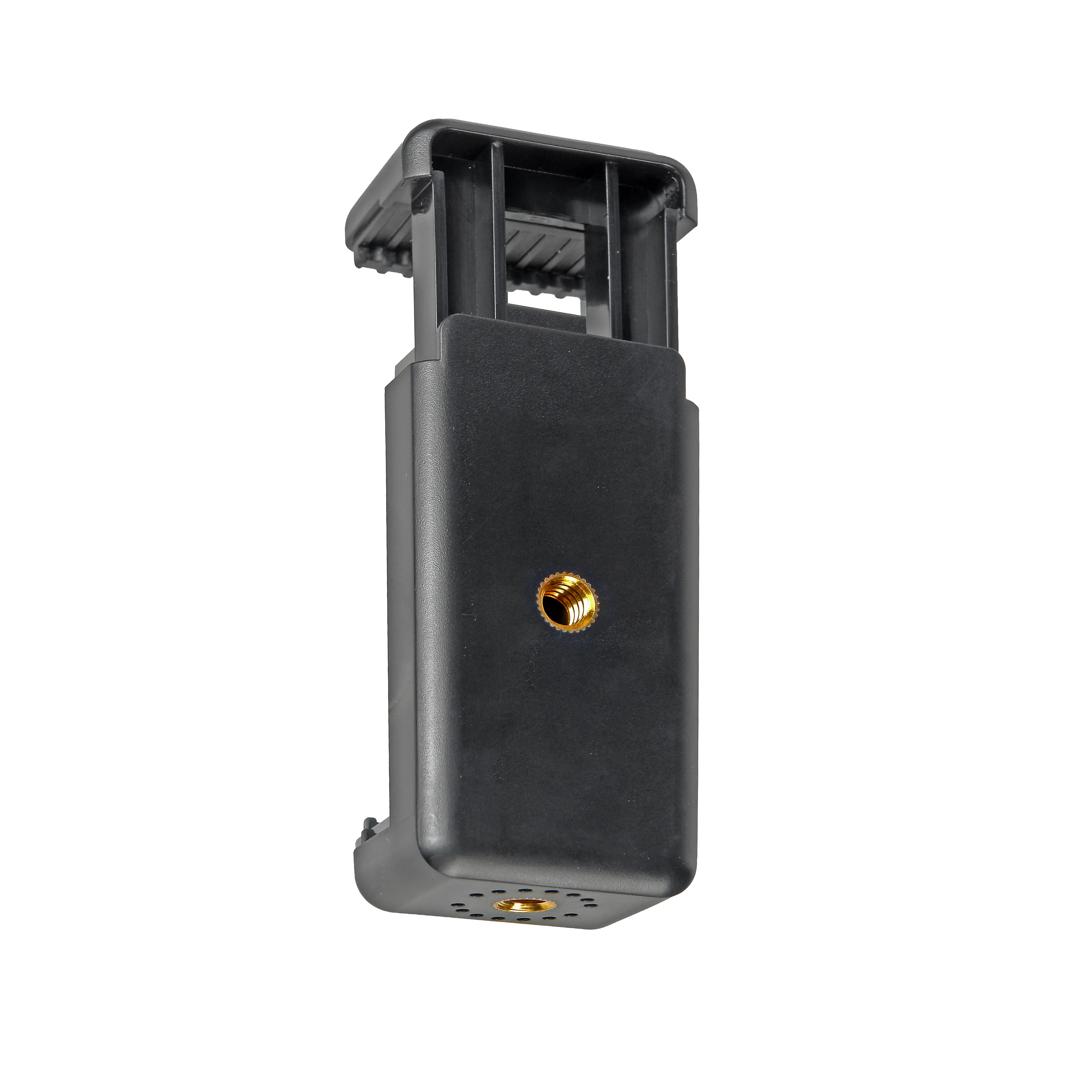 Держатель-адаптер с кнопкой расфиксации способен надежно удерживать устройства шириной от 56 до 86 мм. Держатель имеет два крепежных резьбовых отверстия ¼'' и крепление типа «башмак».