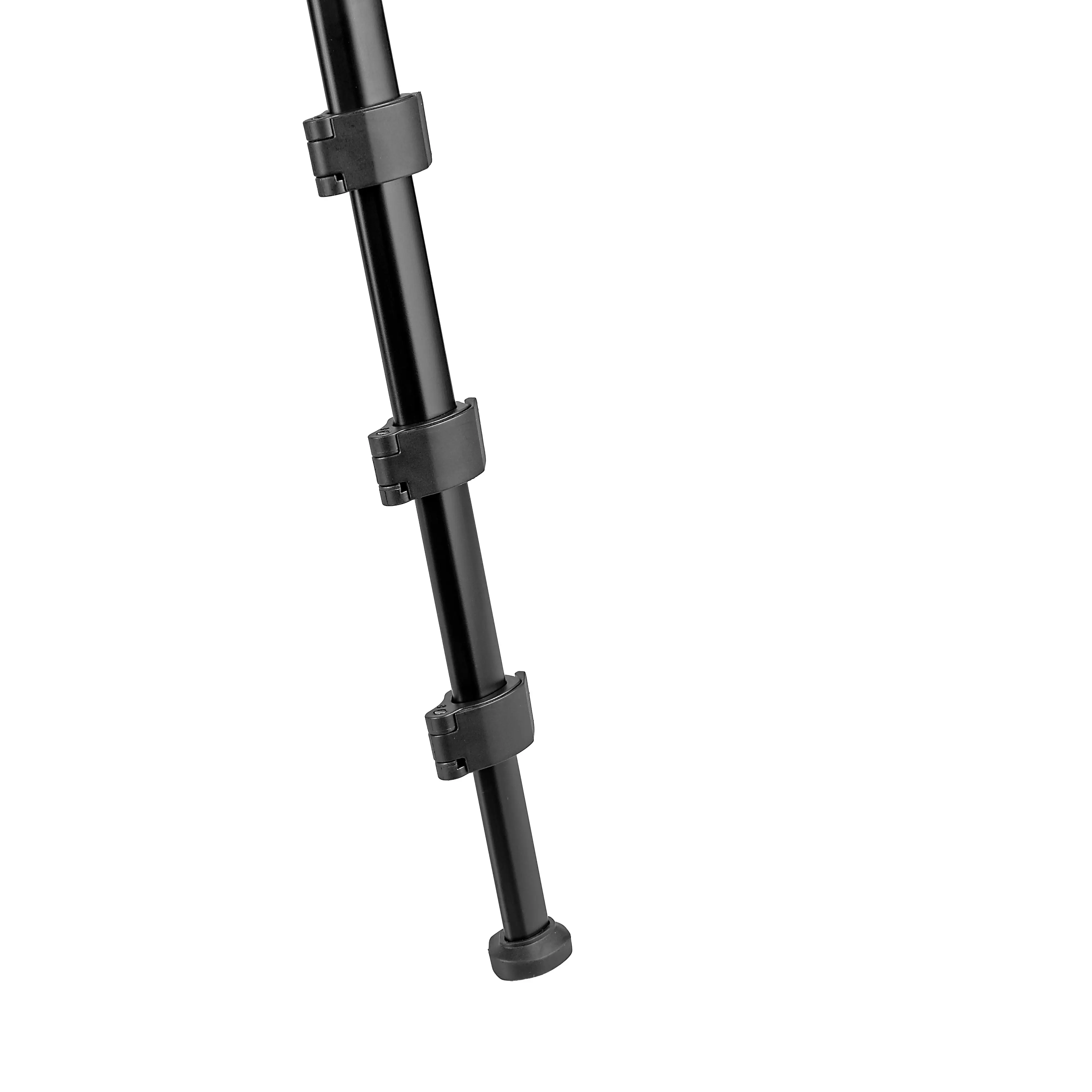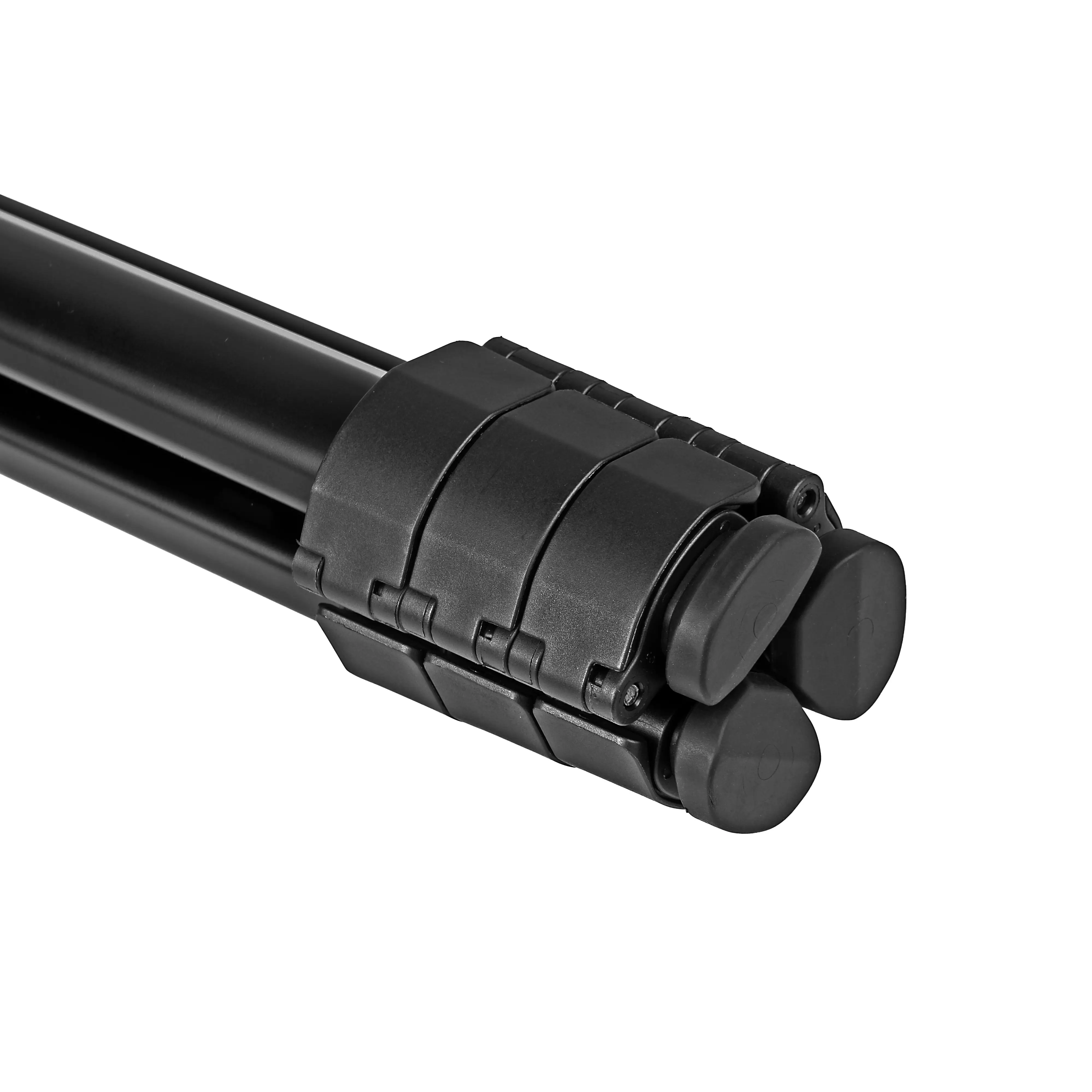 Тренога штатива состоит из 4-х секций, которые плотно фиксируются клипсовыми зажимами. Профиль секций сужается от 29 мм к 20 мм, создавая оптимальный баланс устойчивости и компактности. Многоугольная форма профиля обеспечивает плотное прилегание ног штатива друг к другу в сложенном состоянии, формируя удобную для захвата рукой форму. Благодаря этому компактный и легкий штатив Travel Line 1600BHP комфортно нести в одной руке при перемещении между точками съемки.