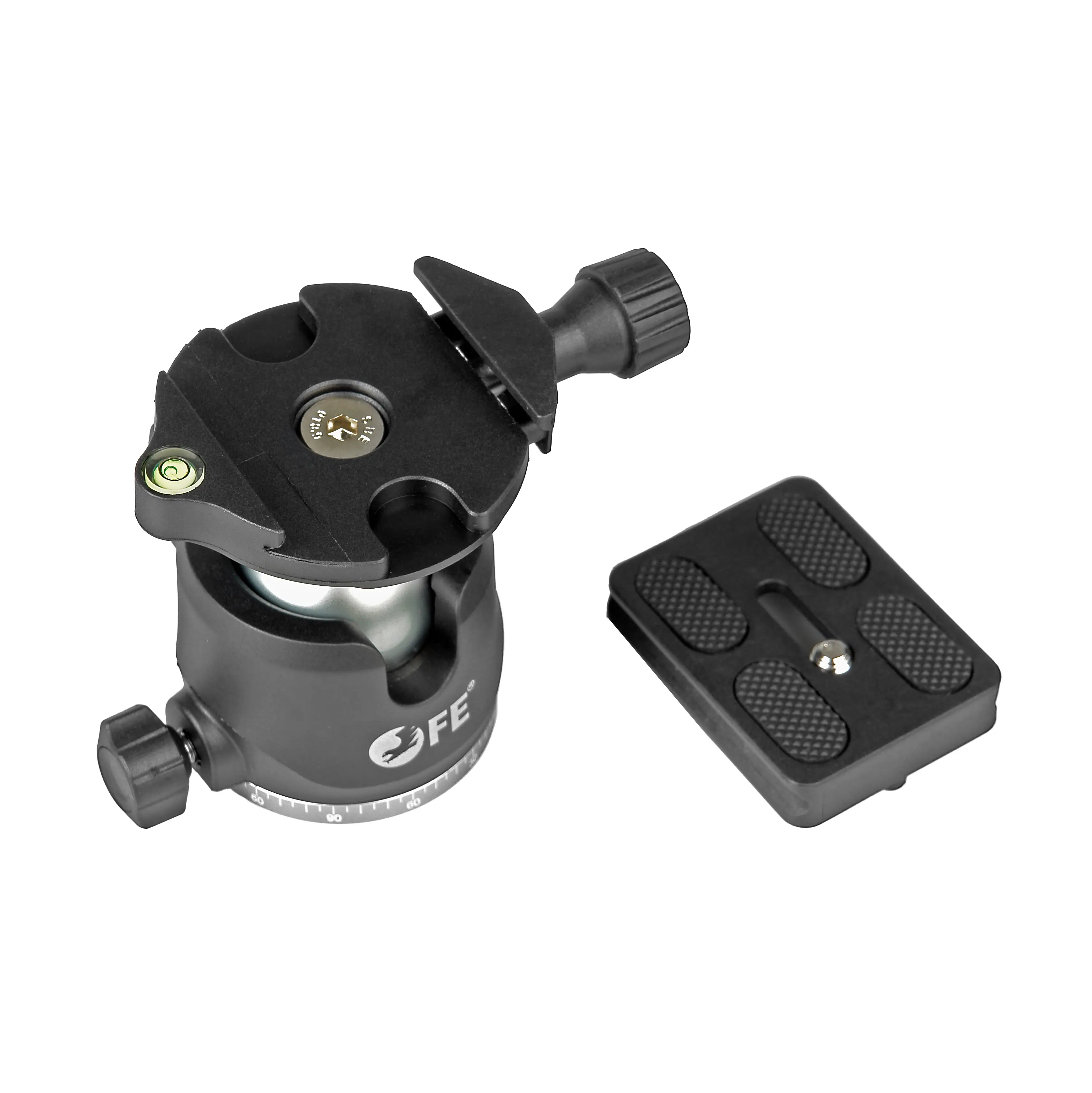 Головка штатива имеет основание с шаровой базой для свободного изменения положения камеры. Угол наклона регулируется в диапазоне от -40° до +90° для съемки как горизонтально, так и вертикально ориентированных кадров. Ось горизонтального панорамирования выполнена с системой жидкостного демпфирования, которая создает ощутимое сопротивление для плавного и равномерного вращения камеры. Эта функция важна для создания качественных панорам и стабилизированного видеоконтента.