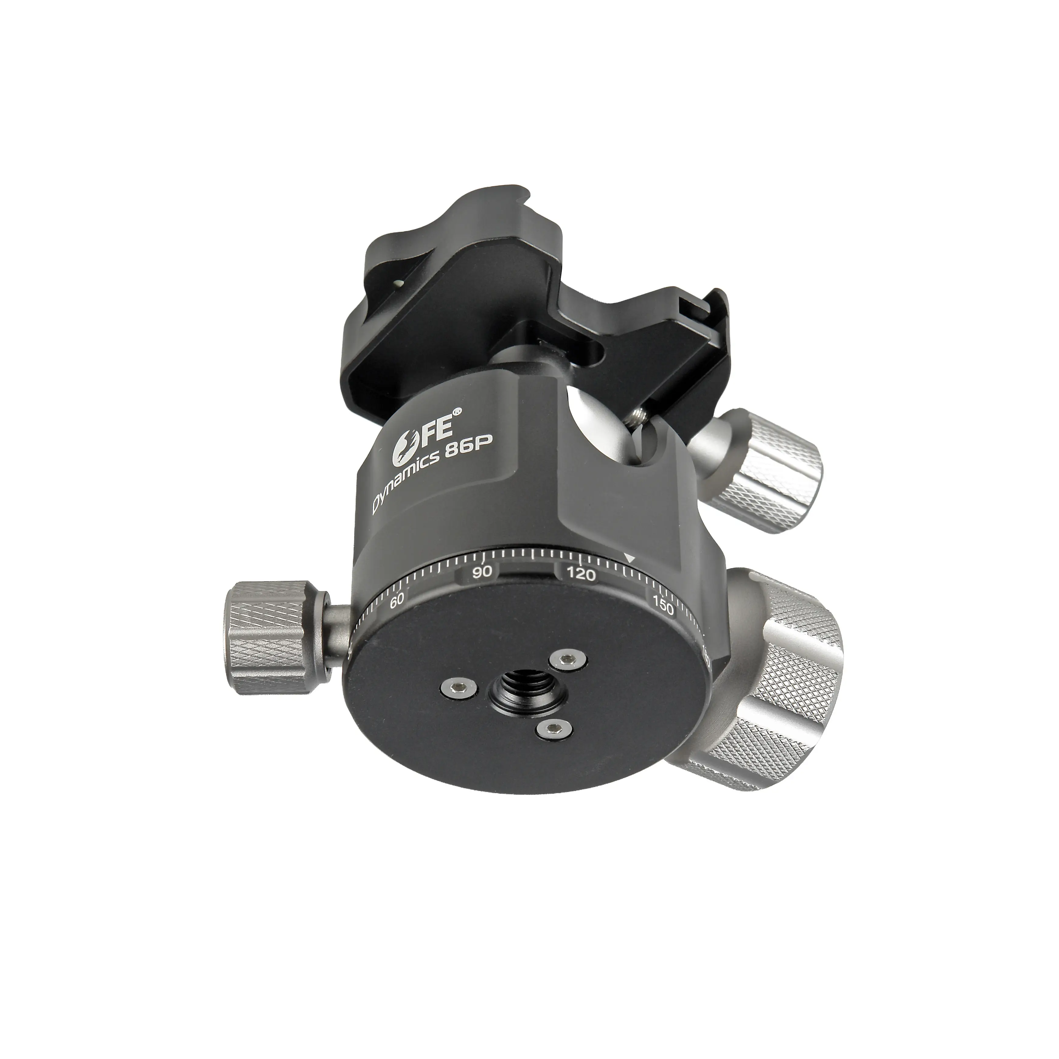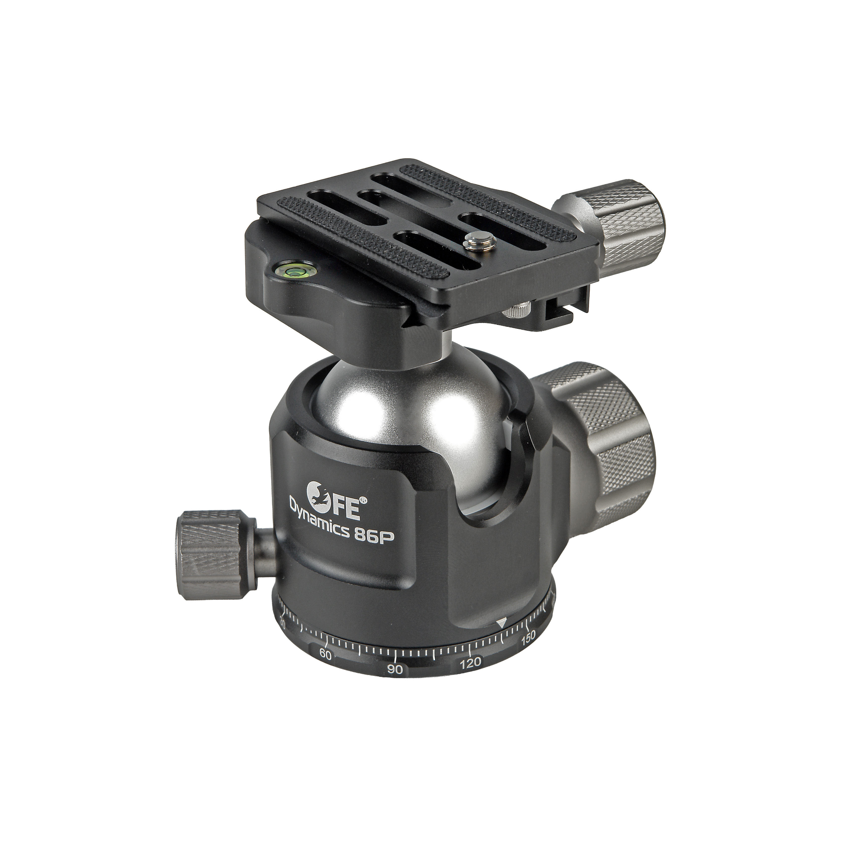 Шаровая головка Falcon Eyes Dynamics 86P представляет собой низкопрофильное устройство с быстросъемной площадкой типа ARCA, предназначенное для установки зеркальных, цифровых или видеокамер весом до 20 кг. Диаметр шара составляет 40 мм, конструкция выполнена из авиационного алюминиевого сплава с анодированием. Модель оснащена пузырьковым уровнем, регулятором усилия трения шара (технология LSA) и поворотным основанием с шкалой для панорамирования на 360°.