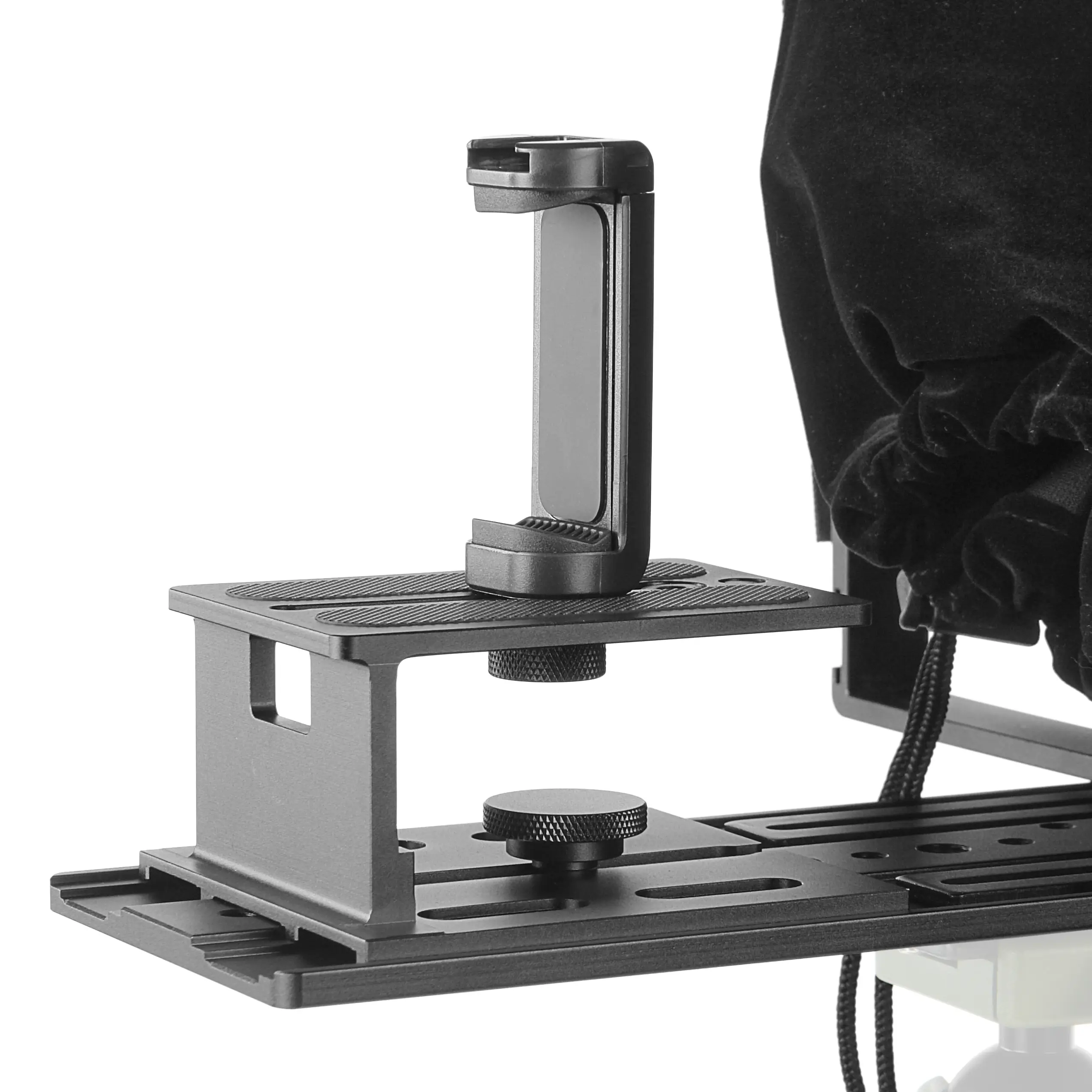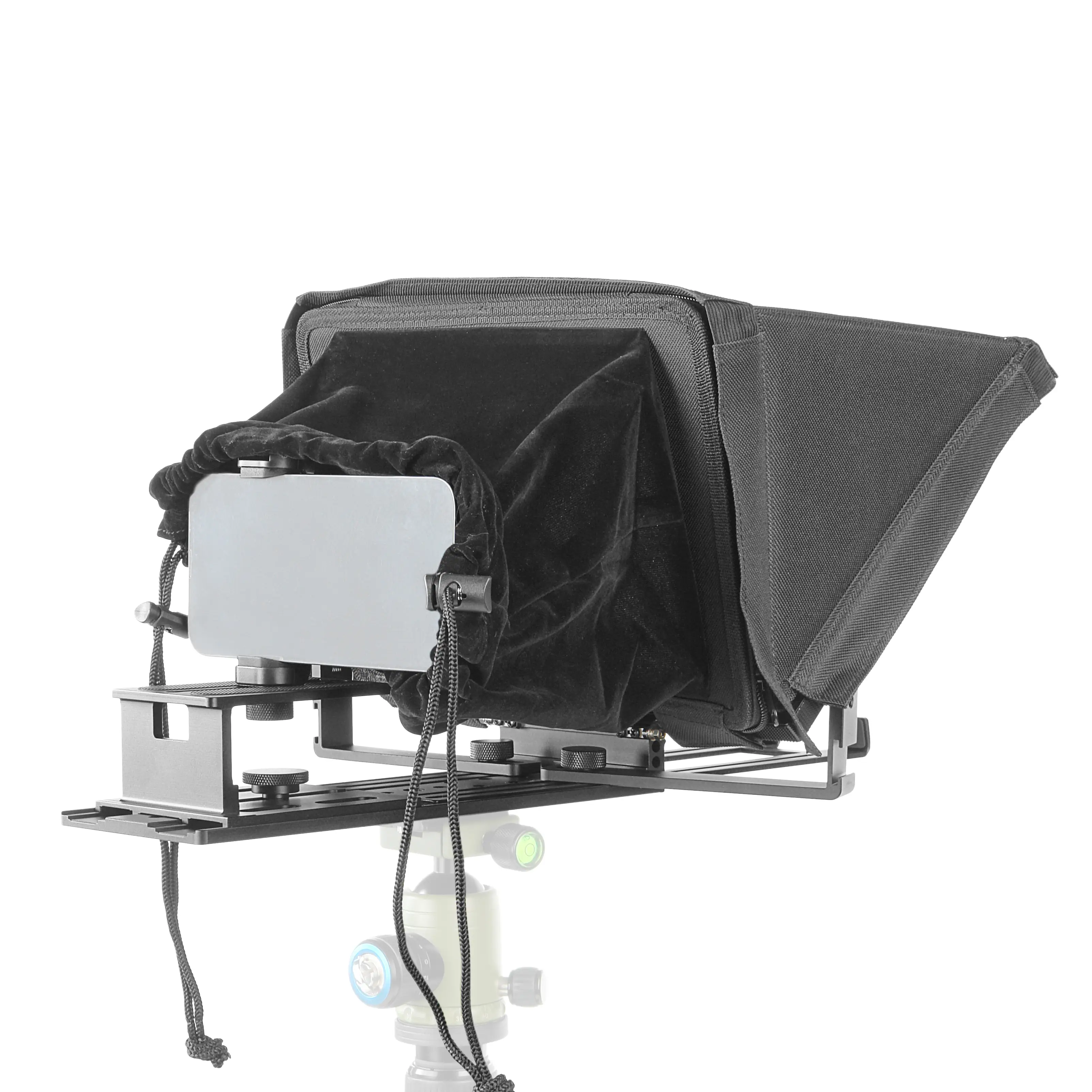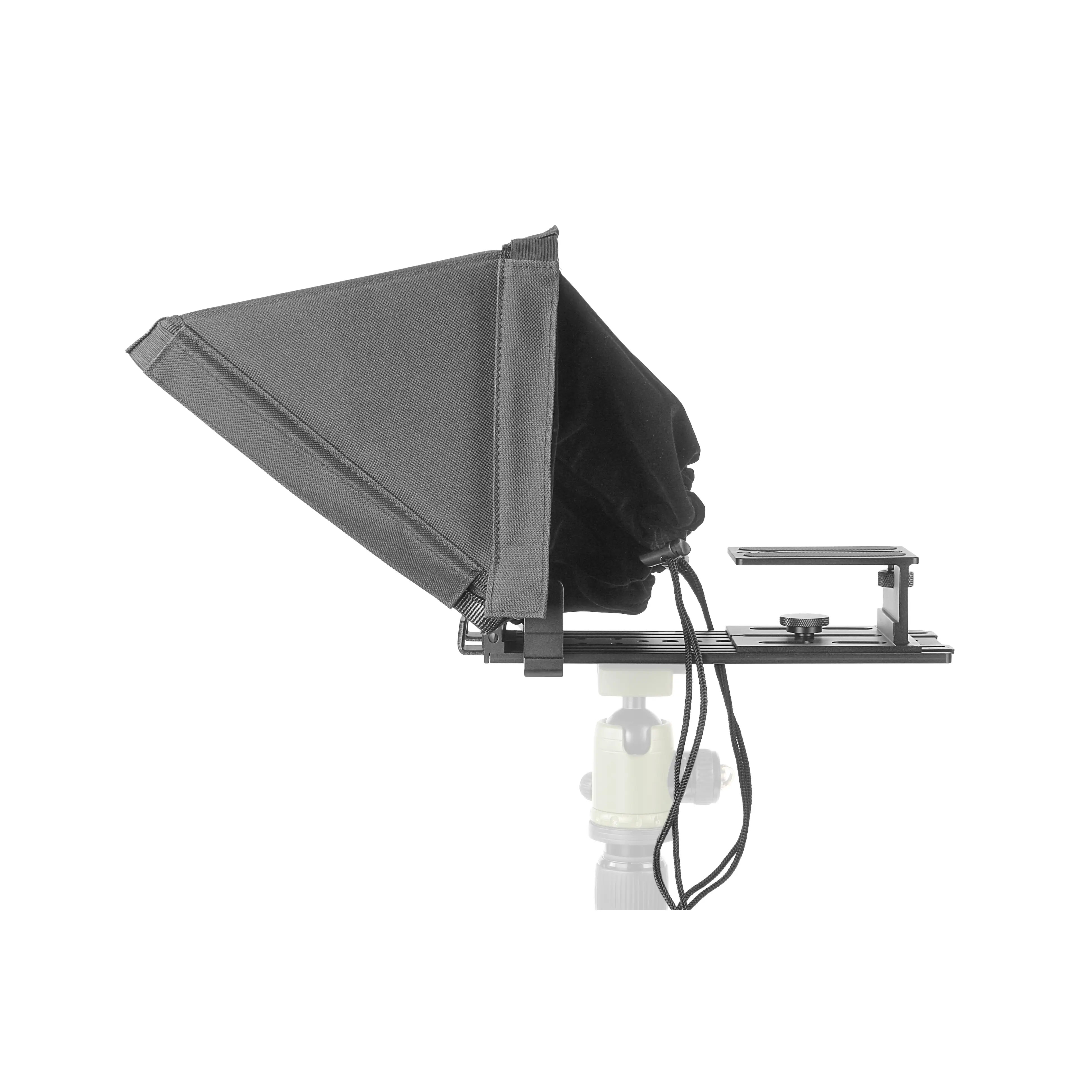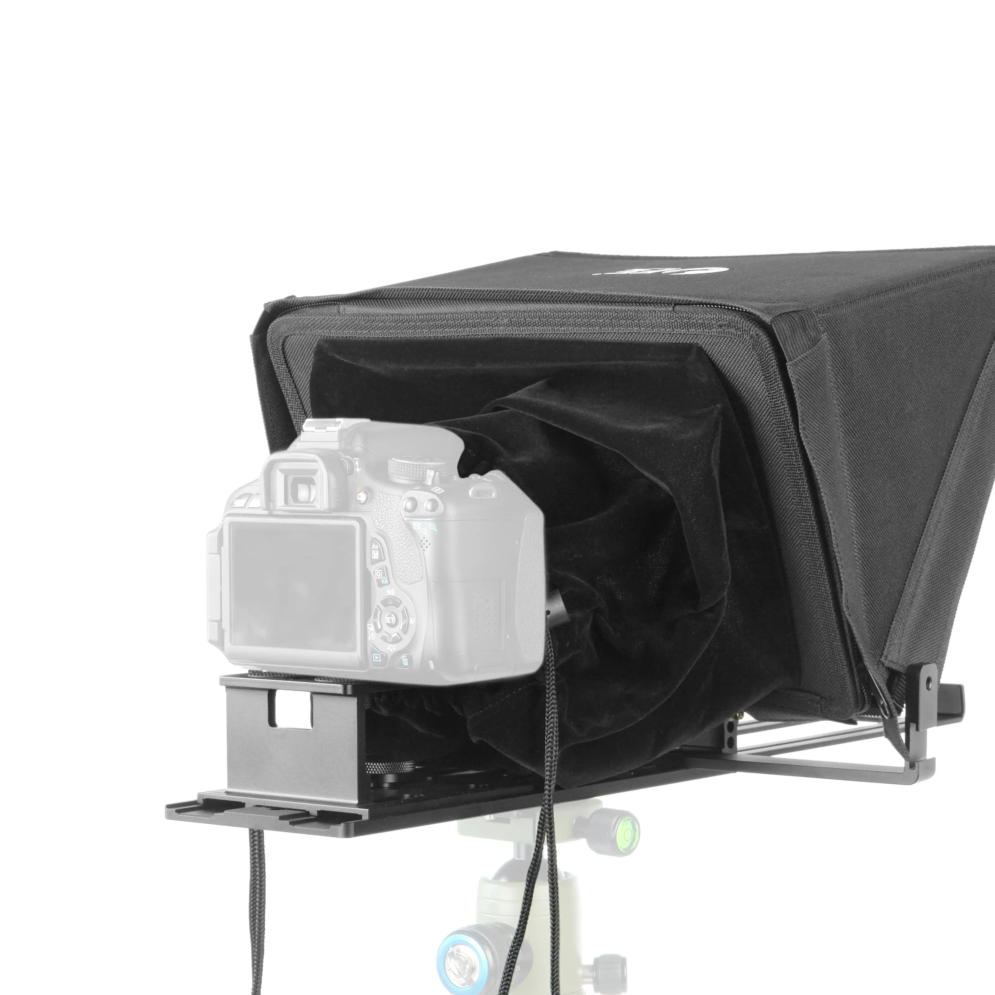 Телесуфлер имеет широкую совместимость с различными устройствами: на площадку с винтами 1/4"и 3/8" может быть установлена зеркальная камера, беззеркальный фотоаппарат или видеокамера.